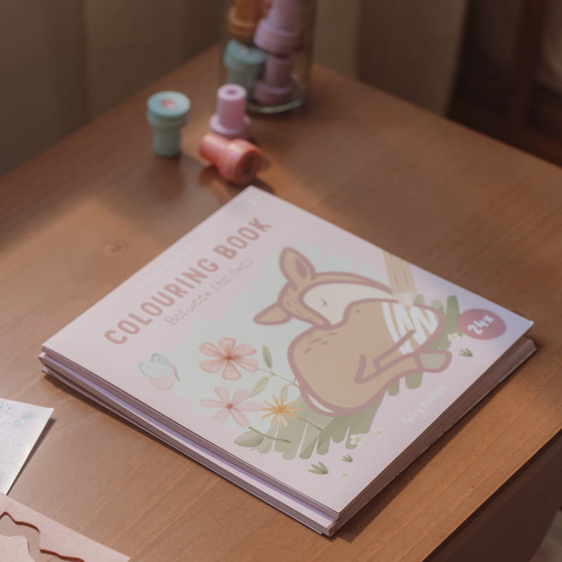 Kolorowanka Fairy Garden od Little Dutch zabierze małych artystów w podróż przez bajkowy ogród pełen przyjaznych zwierząt.