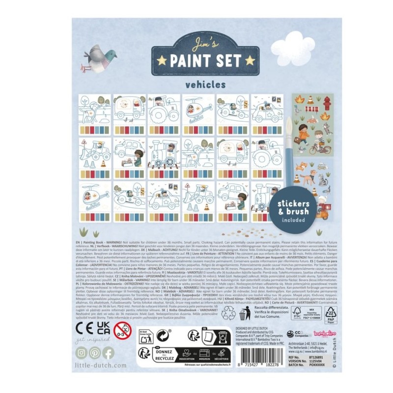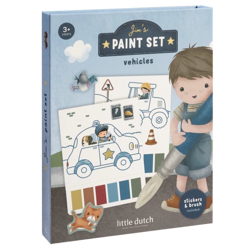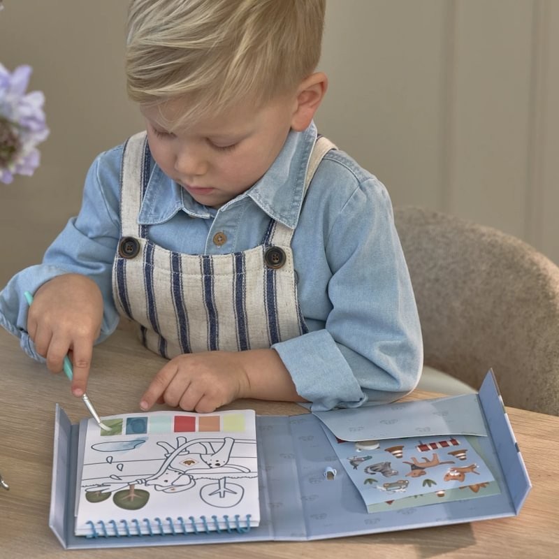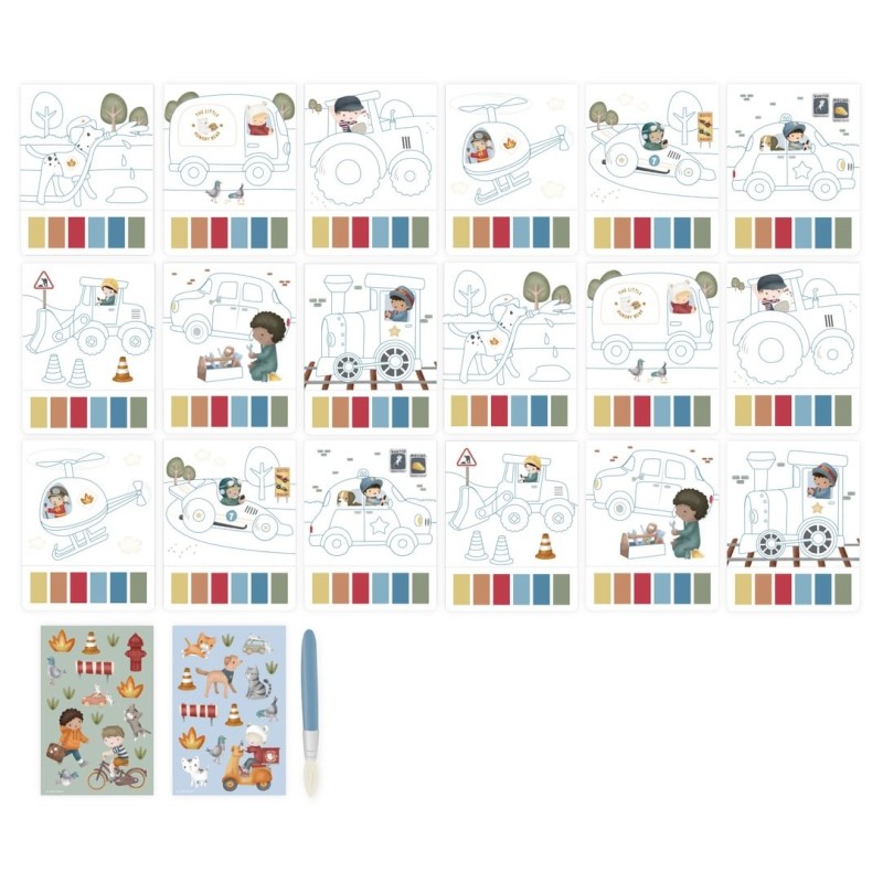 Zestaw kolorowanek wodnych i naklejek Jim & Friends z serii Vehicles od Little Dutch