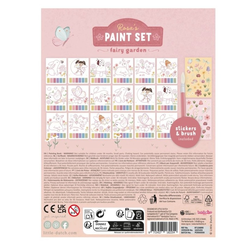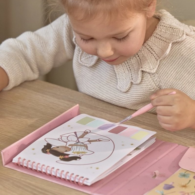 Zestaw kolorowanek wodnych i naklejek Rosa & Friends z kolekcji Fairy Garden od Little Dutch.