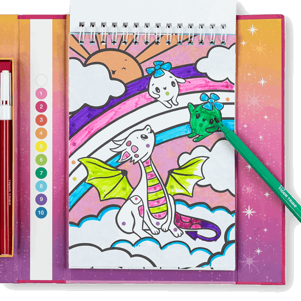 Uroczy zestaw do kolorowania przeznaczony dla kreatywnych dzieci, które lubią mieć pewne wskazówki dotyczące ich artystycznej eksploracji. Wbudowany klucz kolorów pozwala na budowanie pewności siebie w rozmieszczaniu kolorów, tak aby obrazek wyglądał jak najlepiej.