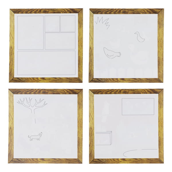 - 4x wysokiej jakości karty do malowania w formie obrazów (wielokrotnego użytku),