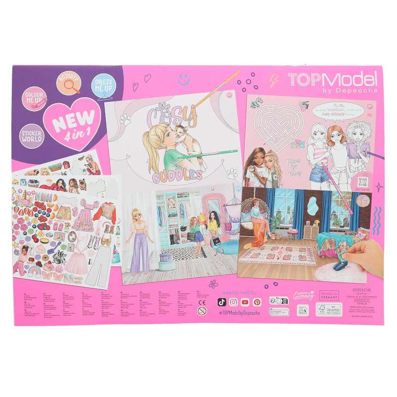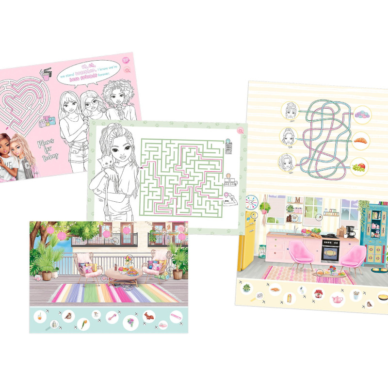 Activity Book od Top Model to 24 strony kolorowanek, łamigłówek i zabawy z naklejkami w mega formacie (42 x 30 cm).