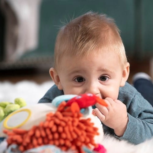 Mała ośmiorniczka będzie bardzo łatwa do uchwycenia w małe rączki dziecka, a jej przyjemny dźwięk, pomoże rozwinąć słuch.