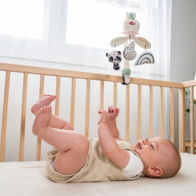 Przymocuj karuzelę podróżną do wózka, łóżeczka czy kołyski, aby wspierać rozwój swojego dziecka jednocześnie zapewniając mu zabawę – ze stylem!