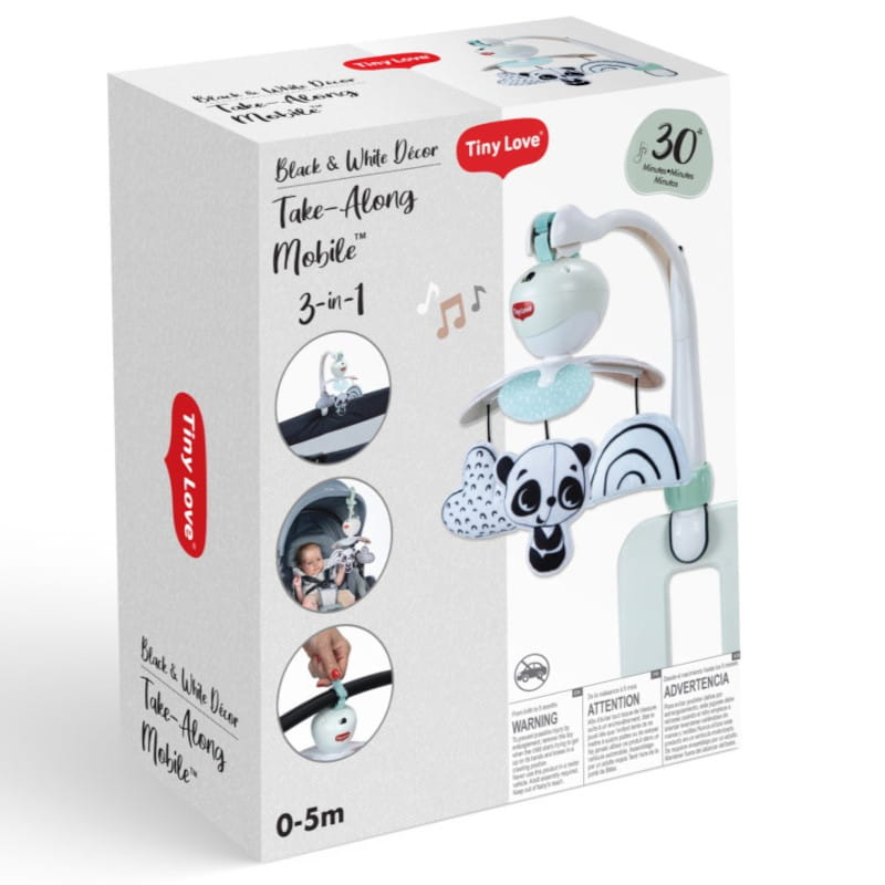 Podróżna karuzela ze Zwierzątkami w czarno-białek kolorystyce kolekcji Decor od Tiny Love.