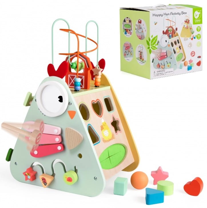 Drewniana kostka edukacyjna aktywności Kurczak marki Classic World.