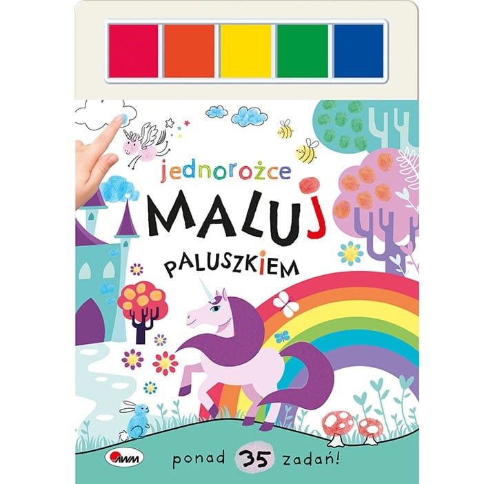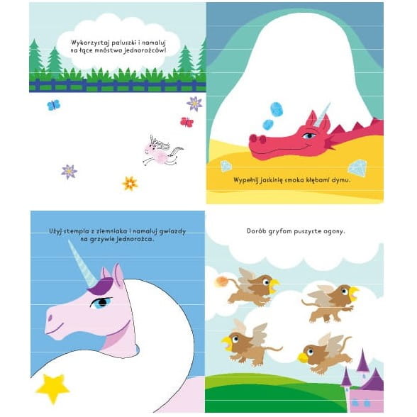Książeczka kreatywna z Jednorożcami do malowania paluszkami.