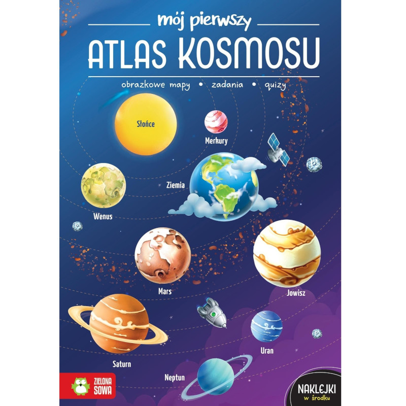 Atlas dla dzieci w wieku wczesnoszkolnym, które interesują się kosmosem i Wszechświatem. Zawiera różnorodne ćwiczenia: zagadki, rebusy, łamigłówki, krzyżówki i inne zadania, dzięki którym dzieci poznają Układ Słoneczny, dowiedzą się czym jest kosmos, planeta karłowata, droga mleczna, galaktyka, stacja kosmiczna i wiele, wiele innych.