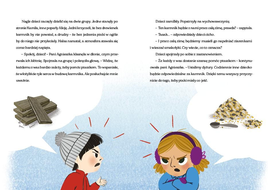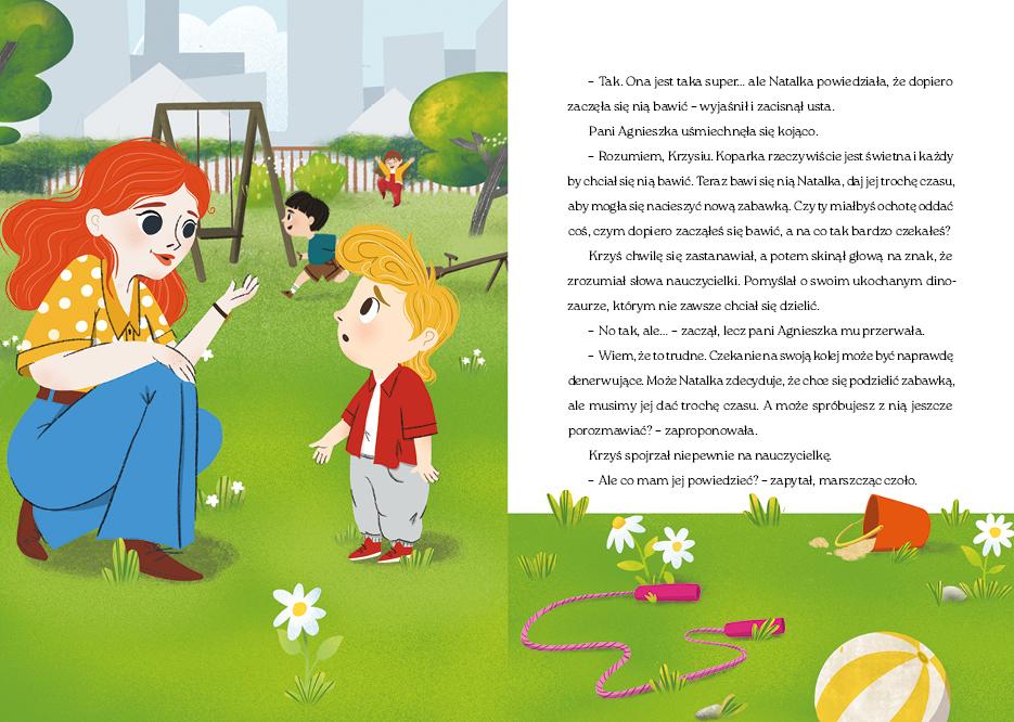 Co zrobić, kiedy kilka osób w przedszkolu chce koniecznie bawić się tą samą zabawką? Jak nauczyć się zdrowej rywalizacji? Jak umiejętnie żartować, nie śmiejąc się z innych? Bohaterowie książki to przedszkolaki z grupy Pszczółki, które podczas zajęć przedszkolnych pod opieką Pani Agnieszki uczą się nowych umiejętności, radzenia sobie z emocjami i współpracy z innymi dziećmi.