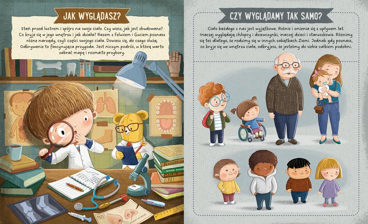 Feluś jak każdy maluch jest ciekawy świata. Tym razem chłopiec i jego miś Gucio przekonają się, że ciało człowieka jest fascynujące. Wspólnie sprawdzą, jak działa i co się kryje w jego wnętrzu, a także nauczą się dbać o zdrowie i dobre samopoczucie od czubka głowy aż po