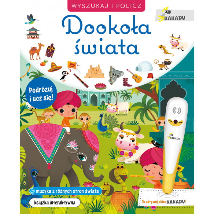 Książka interaktywna do pióra Kakadu, które uruchamia zakodowane na stronach teksty i dźwięki. Publikacja jest częścią innowacyjnego systemu nauki i zabawy w jednym.