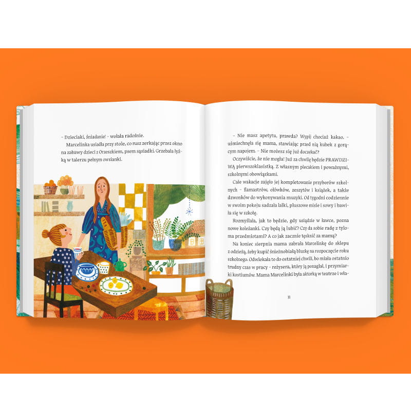 Poznajcie Marcelinkę – bardzo wrażliwą dziewczynkę, która właśnie rozpoczyna pierwszą klasę. Czeka ją mnóstwo znanych każdemu pierwszakowi przygód – nowe miejsca, nauczyciele i koleżanki. A przede wszystkim – cała gama najróżniejszych emocji!