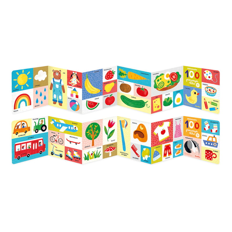 100 pięknych ilustracji przedstawia to, co bliskie, znane i lubiane przez maluchy: przedmioty z najbliższego otoczenia, jedzenie, wesołe zwierzątka czy zabawki.