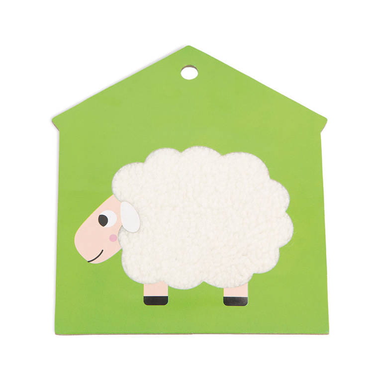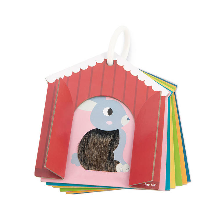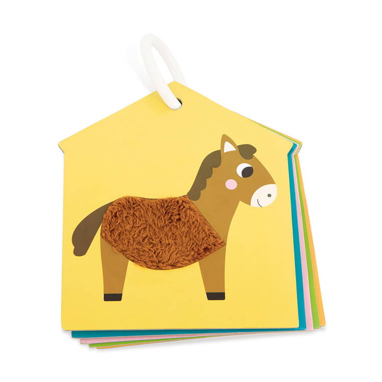 Karty sensoryczne Farma od Janod mają kształt domku (stodoły) i spore, poręczne rozmiary – 15,9 × 18,4 cm. Są zawieszone na otwieranym kółku, stąd łatwo zabrać je na spacer lub w podróż, a niełatwo zgubić. Po rozczepieniu oraz zdjęciu z kółka można rozłożyć elementy na podłodze bądź powiesić w pokoju malucha.