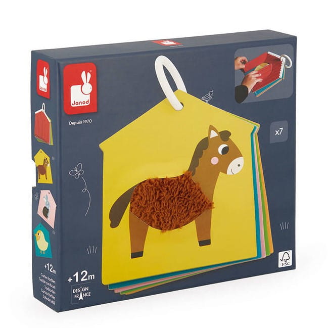 Karty sensoryczne marki Janod zostały wykonane z trwałego kartonu FSC (materiału, pozyskanego z lasów zarządzanych w zrównoważony sposób) i zaprojektowane we Francji. Zapakowane w estetyczne pudełko.