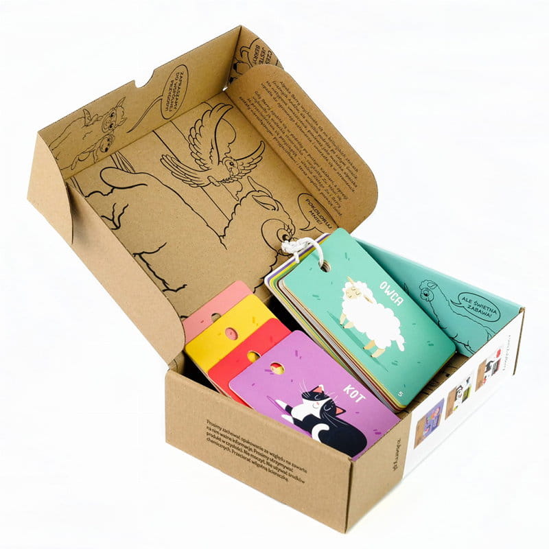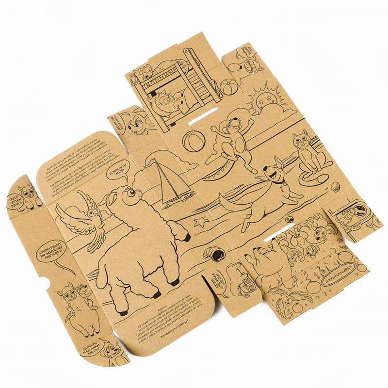 Po otwarciu - pudełko skrywa niespodziankę. Kilkulatek może z pomocą dorosłego rozłożyć pudełko i odkryć tajemnicze ilustracje, poznając perypetie surykatki Zu i alpaki Berry. Jeśli weźmie kredki, może pokolorować ilustrację. Z kolei rodzice mogą przeczytać dziecku historię poznania Zu i Berry i dowiedzieć się, gdzie znajdą przydatne w wychowaniu i edukacji dzieci informacje.