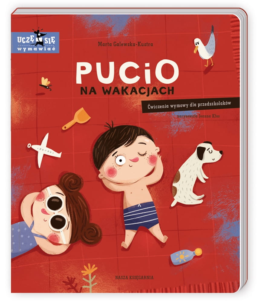 Pucio na wakacjach - ćwiczenia wymowy dla przedszkolaków. Wydawnictwo Nasza Księgarnia. Tym razem Pucio wybiera się z całą rodzinką na wakacje na Kaszubach! Ta, czwarta już część przygód Pucia skierowana jest do dzieci w wieku przedszkolnym. Ciekawa opowieść ma zwrócić uwagę na poprawną artykulację dziecka, czyli umiejętność poprawnego wymawiania głosek