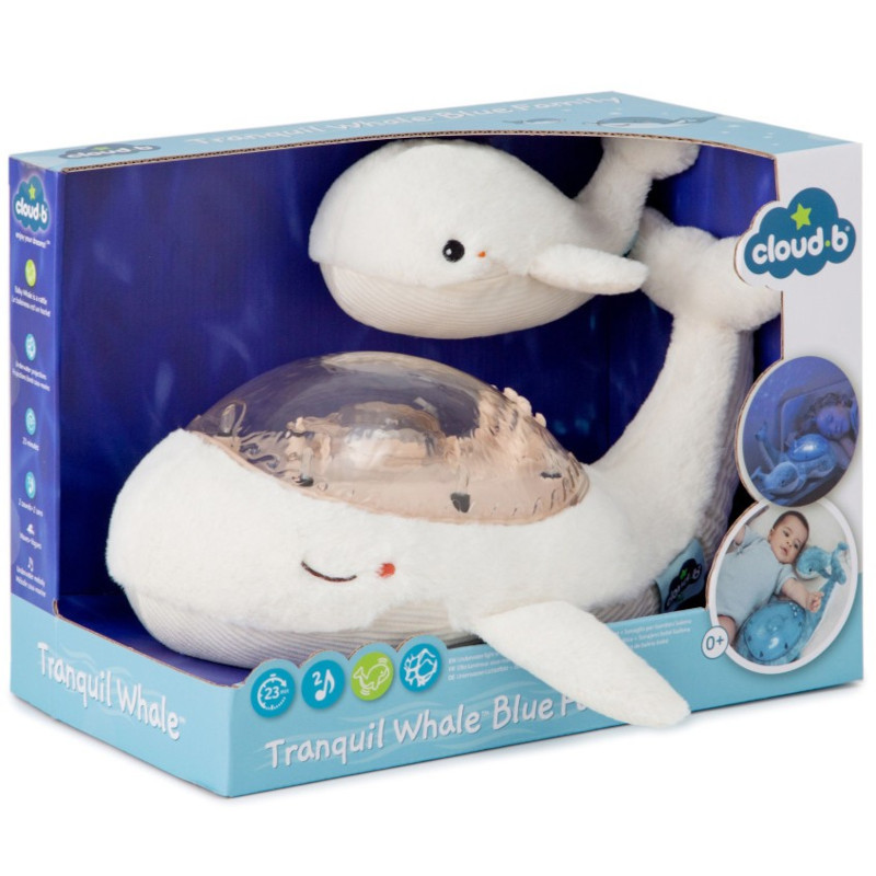 Wieloryb Tranquil Whale to muzyczna pluszowa zabawka z wizualnymi i dźwiękowymi efektami, które zmienią pokój Twojego dziecka w przytulną oazę spokoju.