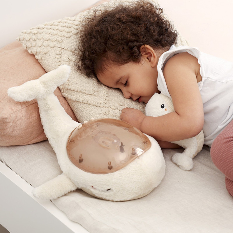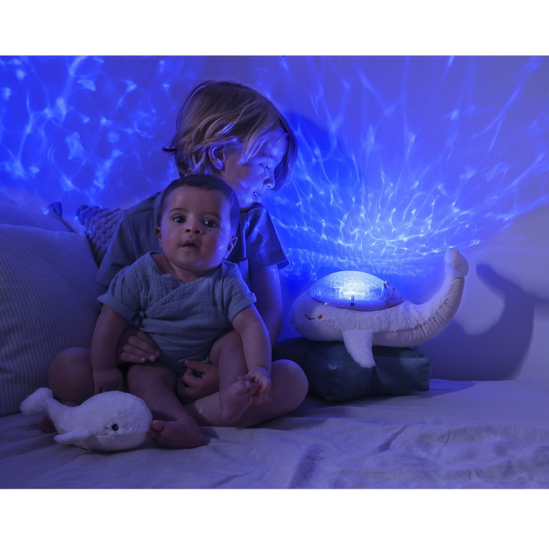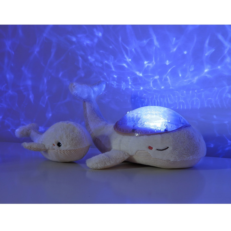 Pluszowy projektor Wieloryb z maluszkiem. Niech fale oceanu przeniosą twoje dziecko do krainy snów...