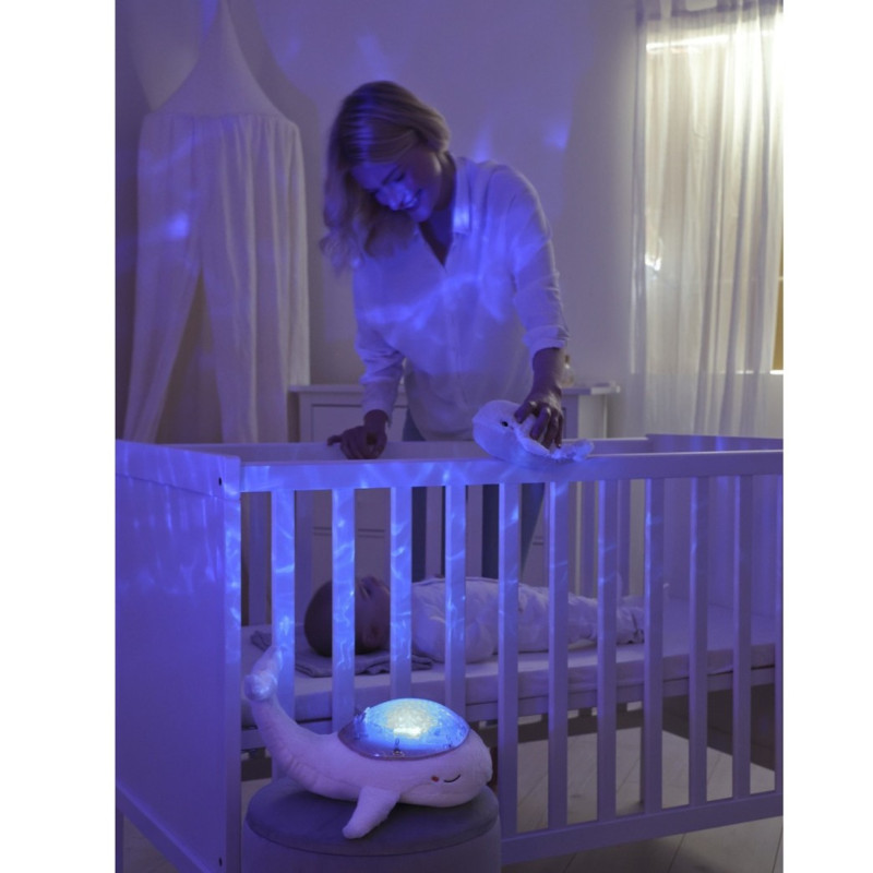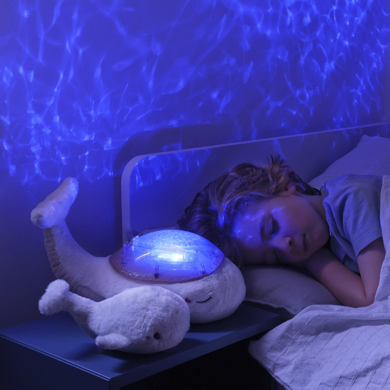 Przytulny i uroczy wieloryb wyciszy niemowlęta przed snem, a także pomorze uspokoić dzieci, które boją się ciemności. Pozwoli maluchowi na spokojne przygotowanie się do snu. Światło pojawiające się na ścianach i suficie oraz uspokajające dźwięki stworzą relaksującą atmosferę, która pomoże dziecku szybko zasnąć.