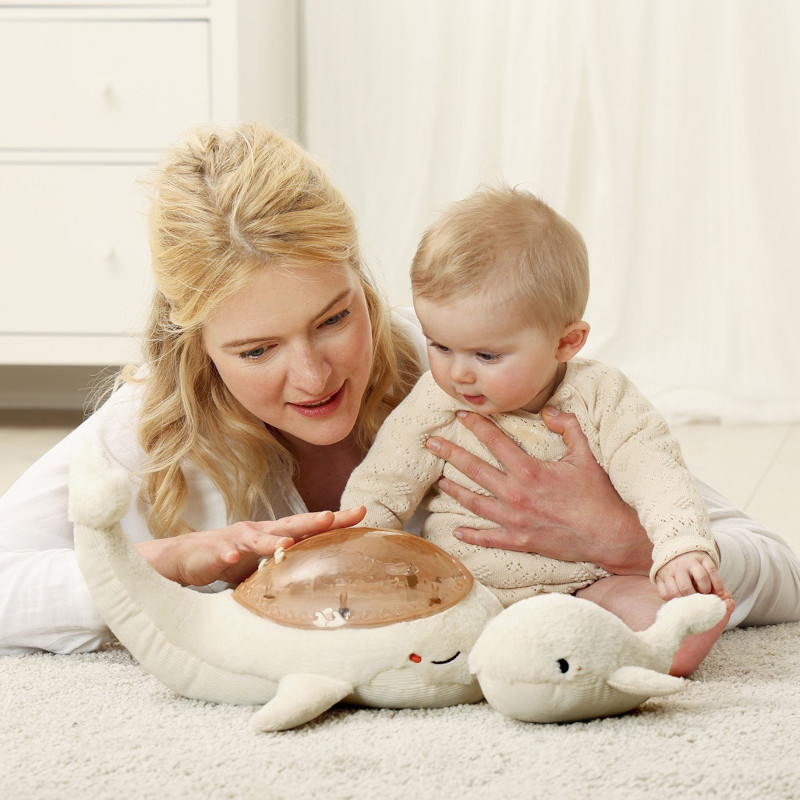 Uroczy projektor i grzechotka Tranquil Whale to wspaniali pomocnicy i przyjaciele podczas zasypiania Twojego dziecka.