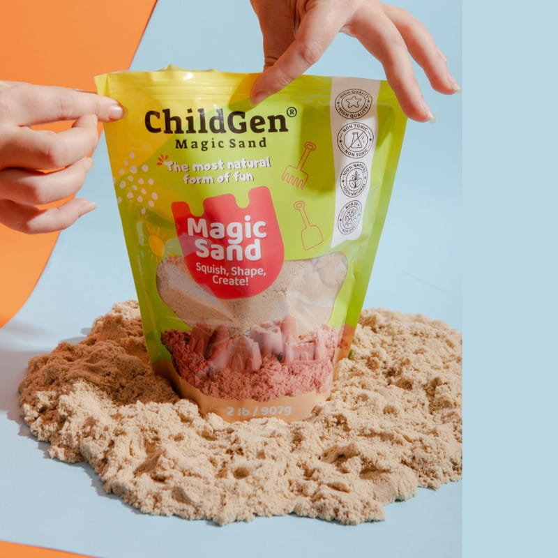 Odkryj magię kreatywnej zabawy z naturalnym piaskiem kinetycznym ChildGen, który wspiera rozwój dziecięcej wyobraźni i zdolności motorycznych! Wykonany z naturalnych składników, pachnący i bezpieczny – idealny dla dzieci oraz dorosłych, szukających chwili relaksu i wyciszenia. Miękki, łatwy do formowania, doskonale nadaje się do ściskania, zgniatania i dotykania, zapewniając przyjemne doznania sensoryczne.