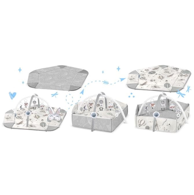 - jako mata z pałąkami do aktywizacji maluszka i zachęcania do wyciągania rączek i nóżek do góry