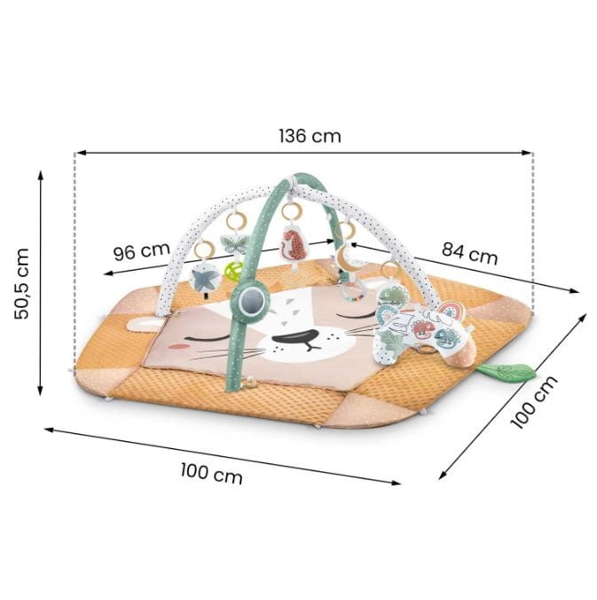 Sposób konserwacji: pałąki przecierać wilgotną ściereczką i czyścić powierzchniowo. Podstawę maty można prać w pralce w niskiej temperaturze.