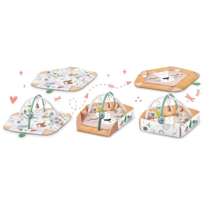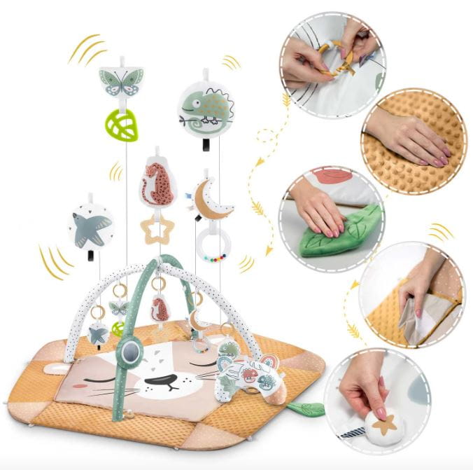 - jako mata z pałąkami do aktywizacji maluszka i zachęcania do wyciągania rączek i nóżek do góry