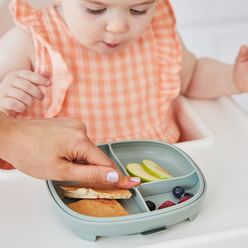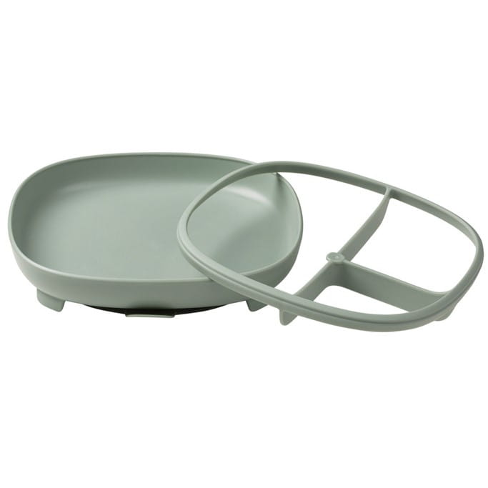 Wyjmowana przegroda pozwala na dostosowanie go do wieku i umiejętności malucha. Zaokrąglone brzegi i stabilna przyssawka zapewniają bezpieczeństwo i wygodę podczas jedzenia.