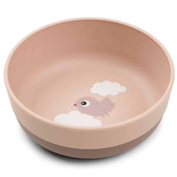 Różowa miska z kolekcji Foodie ma na dnie uroczy motyw beztroskiego ptaszka Birdee cieszącego się życiem wśród chmur. Jej jedwabiście matowa powierzchnia pasuje do reszty kolekcji Foodie. Ciemniejszy odcień różowej podstawy dodaje ładnego dwukolorowego detalu.