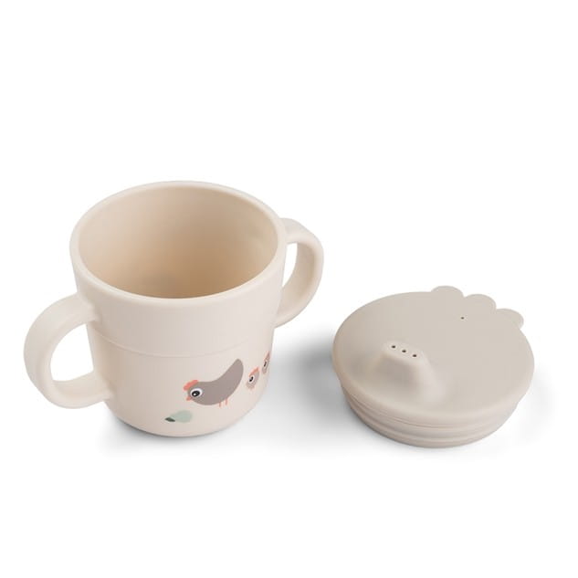 Kubek z zestawu możemy stosować jako pierwszy kubek z ustnikiem, ale także po zdjęciu wieczka jako pierwszy tradycyjny kubek z uchwytami.