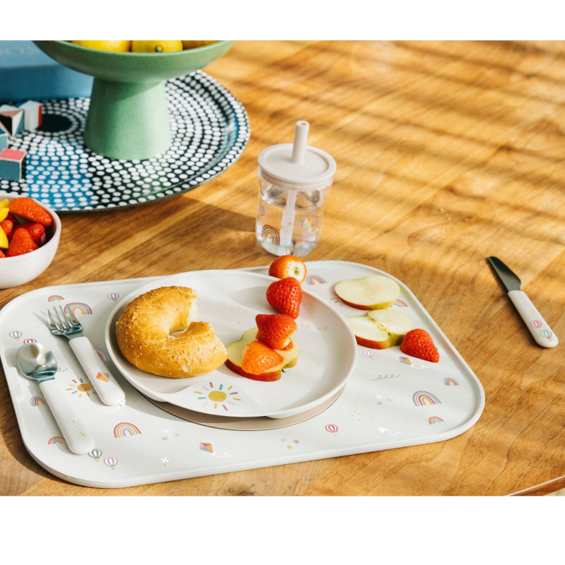 3-częściowy zestaw metalowych sztućców dla dzieci Mio składa się z widelca, noża oraz łyżki – wszystkiego, co niezbędne, by Maluch mógł samodzielnie zjeść cały posiłek. Dedykowany jest dzieciom w wieku 2-3 lat, które rozpoczynają przygodę z posługiwaniem się sztućcami, by mogły doskonalić swoje umiejętności i naśladować rodziców.