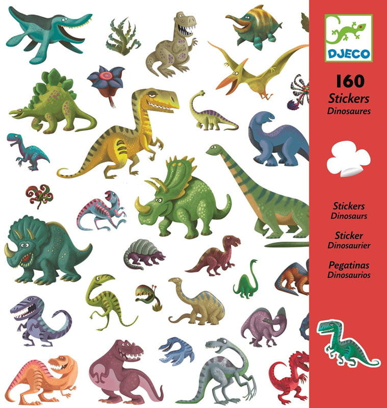 Zestaw 160 prześlicznych naklejek z rozmaitymi dinozaurami. Kolorowe naklejki znakomicie nadają się do tworzenia przepięknych obrazków i kreatywnych prac. Wzorując się na nich dziecko może również uczyć się rysować.