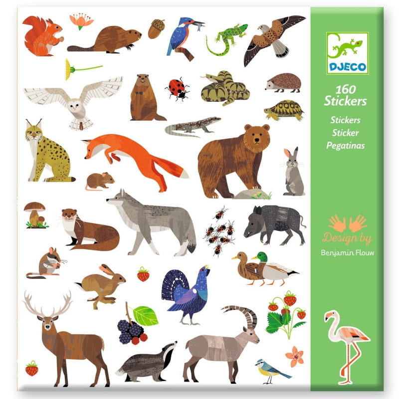 Zestaw 160 naklejek europejskich zwierząt. Od dobrze znanych zwierząt, takich jak jelenie, lisy i dziki, po mniej znane cietrzewie, borsuki i szczygły – dzieci odkryją bogatą różnorodność europejskiej flory i fauny.