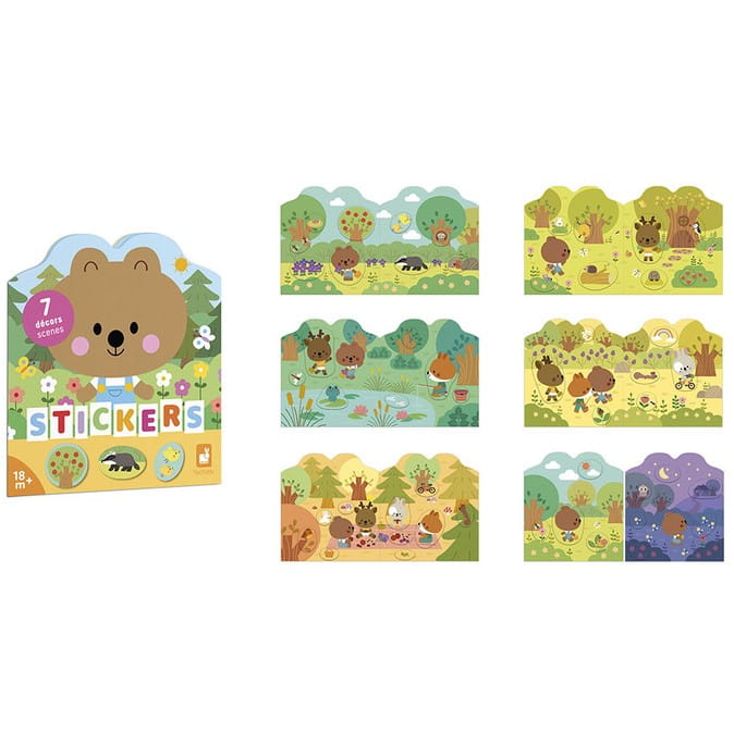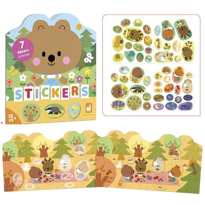 Książeczka do wyklejania z naklejkami Las francuskiej marki JANOD.