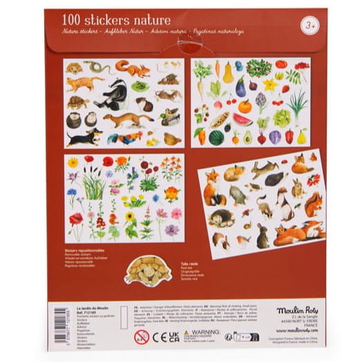 Zestaw 4 arkuszy ze 100 naklejkami z pięknie ilustrowanymi motywami ptaków, roślin, owadów czy małych zwierzątek.