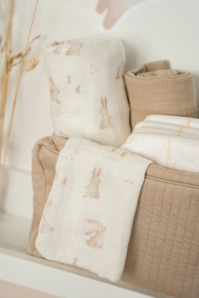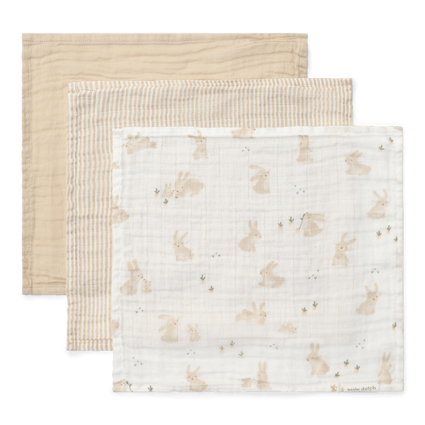 Chusteczki muślinowe 25x25 cm Baby Bunny od Little Dutch. Otul codzienną pielęgnację maluszka delikatnością natury dzięki tym ultramiękkim muślinowym chusteczkom. Wykonane w 100% z organicznej bawełny, są niezwykle przyjemne w dotyku, chłonne i w pełni bezpieczne dla wrażliwej skóry dziecka. Idealne do wycierania buzi, rączek, nosa czy rozlanego mleka, zawsze pod ręką, gdy ich potrzebujesz.
