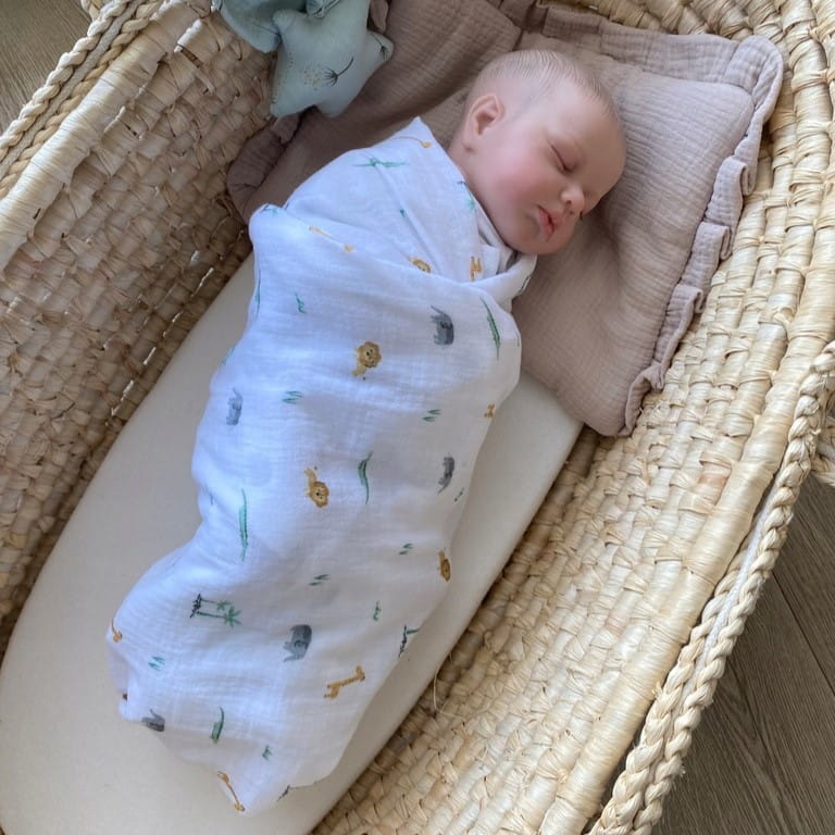 Otulacz z bawełny muślinowej sprawdzi się jako kocyk dla maluszka i otulacz do spowijania idealny już od pierwszych dni życia. Otulacz delikatnie otuli dziecko, sprawiając że poczuje się komfortowo i bezpiecznie.