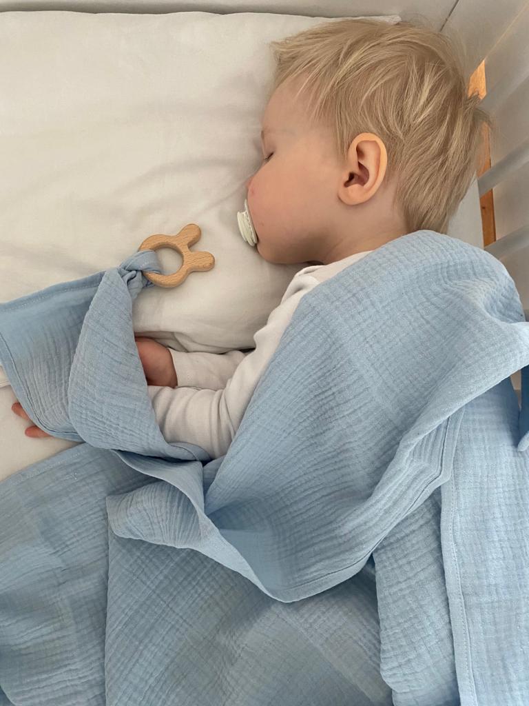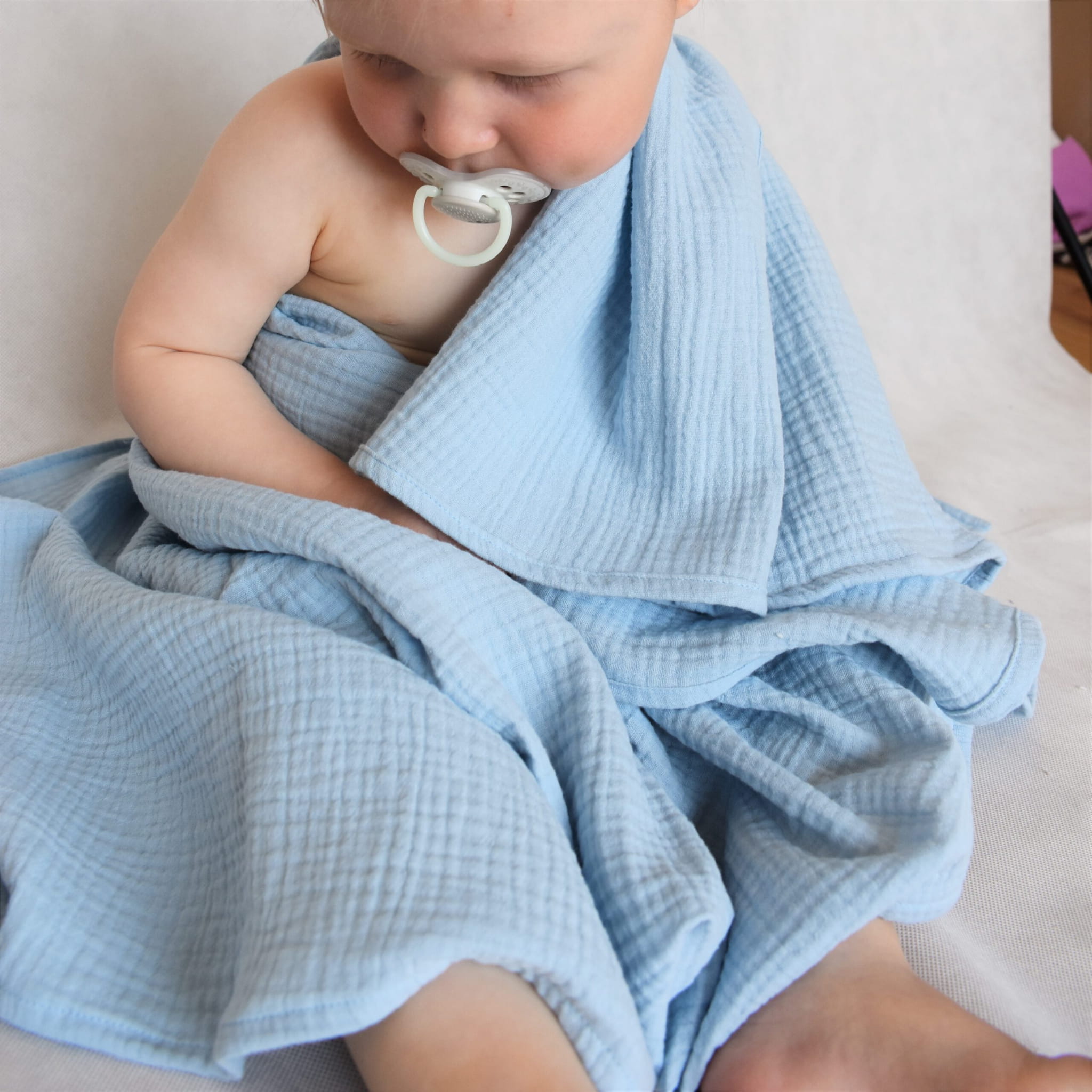 Otulacz z bawełny muślinowej sprawdzi się jako kocyk dla maluszka i otulacz do spowijania idealny już od pierwszych dni życia. Otulacz delikatnie otuli dziecko, sprawiając że poczuje się komfortowo i bezpiecznie.