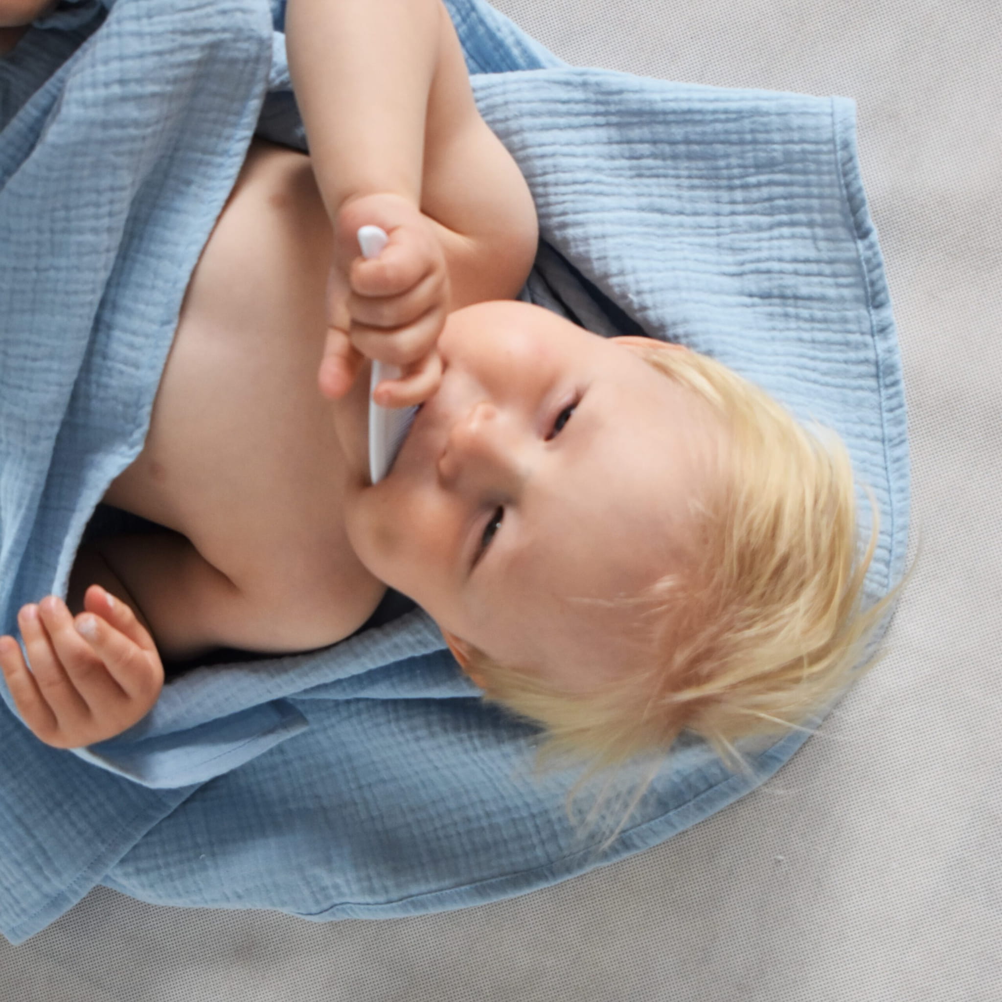 Otulacz jest delikatny i przyjemny w dotyku przez co nadaje się również dla wrażliwej skóry noworodka. Delikatny splot sprawia, że otulacz jest lekki i przewiewny.
