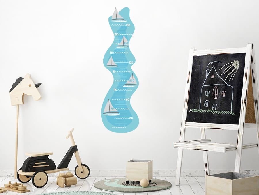 Naklejka dekoracyjna na ścianę z miarką wzrostu Żaglówki to piękna, modna i niezwykła dekoracja pokoju dla dziecka od PasteloweLove.