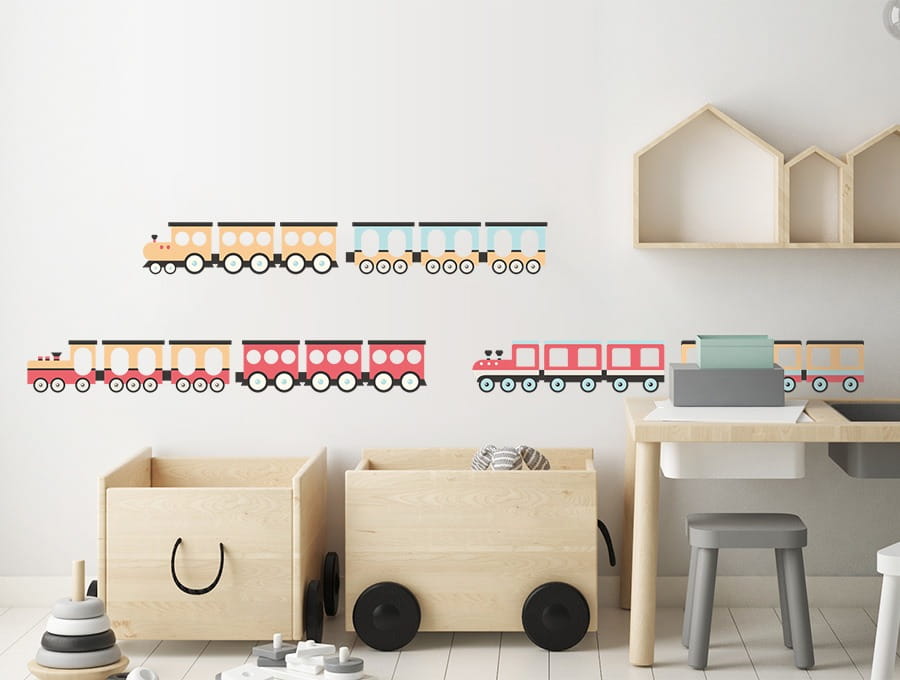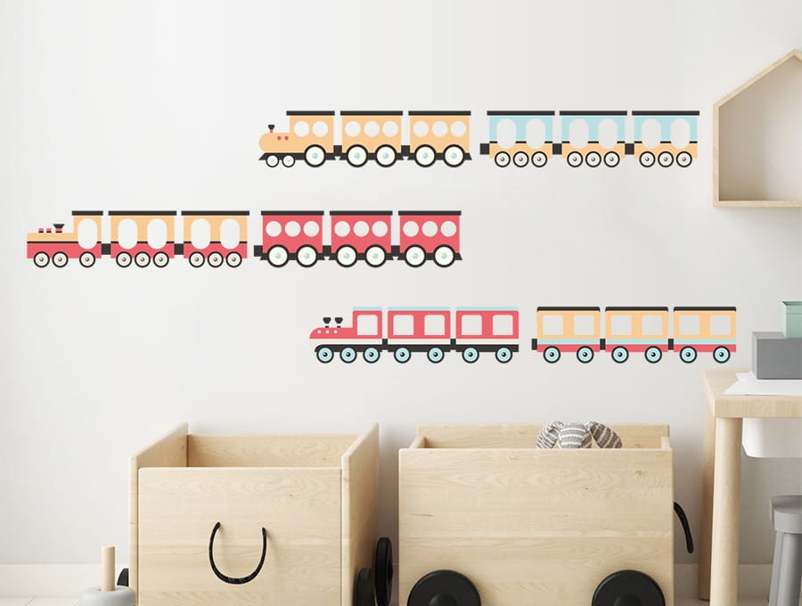 Naklejka dekoracyjna na ścianę Pociągi Czerwone to piękna, modna i niezwykła dekoracja dziecięcego pokoju od PasteloweLove
