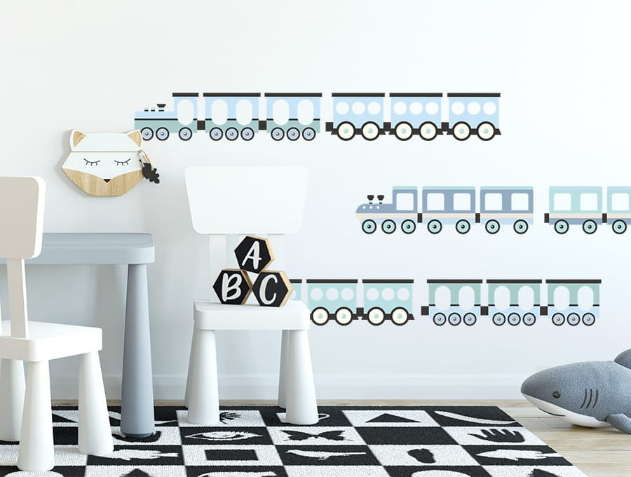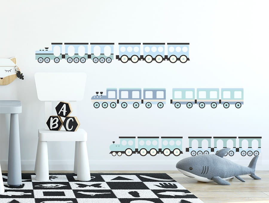 Naklejka dekoracyjna na ścianę Pociągi Niebieskie to piękna, modna i niezwykła dekoracja dziecięcego pokoju od PasteloweLove