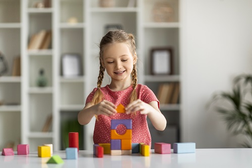 budowanie kolorowych konstrukcji – możesz ustalić z dzieckiem, że budujecie z drewnianych klocków w tym samym kolorze.