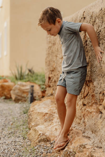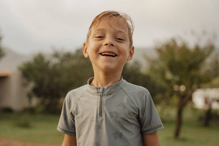 Ta koszulka z krótkim rękawem ochroni malucha przed słońcem podczas zabawy na powietrzu i w wodzie. Niezależnie od tego, czy lubi budować zamki z piasku, czy pluskać się w wodzie, ta elastyczna koszulka zapewni mu wygodę przez cały dzień. Dzięki zamkowi błyskawicznemu jej zakładanie i zdejmowanie jest bardzo proste. Koszulka do kąpieli wykonana jest z poliestru pochodzącego z recyklingu z domieszką elastanu. Dzięki filtrowi UPF 50+ skutecznie chroni przed promieniowaniem UV. Stanowi świetne uzupełnienie do pozostałych produktów Little Dutch z tej kolekcji.