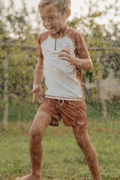 Ta koszulka z krótkim rękawem ochroni malucha przed słońcem podczas zabawy na powietrzu i w wodzie. Niezależnie od tego, czy lubi budować zamki z piasku, czy pluskać się w wodzie, ta elastyczna koszulka zapewni mu wygodę przez cały dzień. Dzięki zamkowi błyskawicznemu jej zakładanie i zdejmowanie jest bardzo proste. Koszulka do kąpieli wykonana jest z poliestru pochodzącego z recyklingu z domieszką elastanu. Dzięki filtrowi UPF 50+ skutecznie chroni przed promieniowaniem UV. Stanowi świetne uzupełnienie do pozostałych produktów Little Dutch z tej kolekcji.