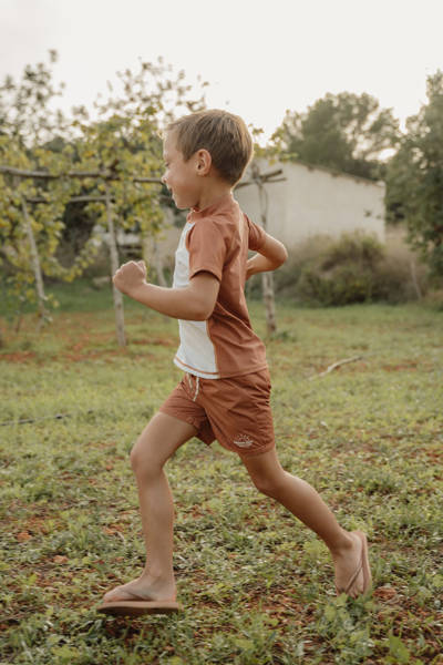 Ta koszulka z krótkim rękawem ochroni malucha przed słońcem podczas zabawy na powietrzu i w wodzie. Niezależnie od tego, czy lubi budować zamki z piasku, czy pluskać się w wodzie, ta elastyczna koszulka zapewni mu wygodę przez cały dzień. Dzięki zamkowi błyskawicznemu jej zakładanie i zdejmowanie jest bardzo proste. Koszulka do kąpieli wykonana jest z poliestru pochodzącego z recyklingu z domieszką elastanu. Dzięki filtrowi UPF 50+ skutecznie chroni przed promieniowaniem UV. Stanowi świetne uzupełnienie do pozostałych produktów Little Dutch z tej kolekcji.