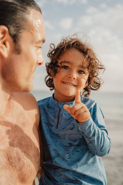 Ta koszulka z długim rękawem ochroni malucha przed słońcem podczas zabawy na powietrzu i w wodzie. Niezależnie od tego, czy lubi budować zamki z piasku, czy pluskać się w wodzie, ta elastyczna koszulka zapewni mu wygodę przez cały dzień. Dzięki zamkowi błyskawicznemu jej zakładanie i zdejmowanie jest bardzo proste. Koszulka do kąpieli wykonana jest z poliestru pochodzącego z recyklingu z domieszką elastanu. Dzięki filtrowi UPF 50+ skutecznie chroni przed promieniowaniem UV. Stanowi świetne uzupełnienie do pozostałych produktów Little Dutch z tej kolekcji.
