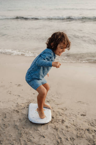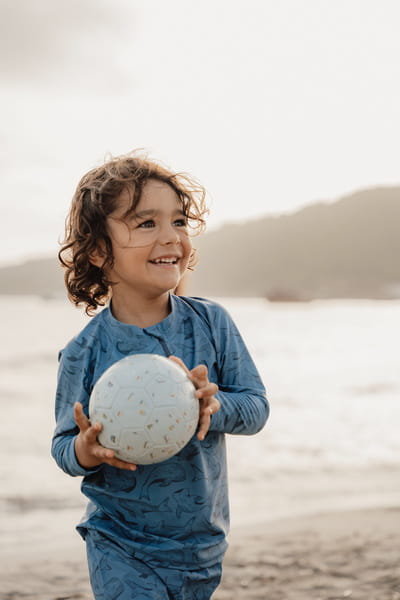Ta koszulka z długim rękawem ochroni malucha przed słońcem podczas zabawy na powietrzu i w wodzie. Niezależnie od tego, czy lubi budować zamki z piasku, czy pluskać się w wodzie, ta elastyczna koszulka zapewni mu wygodę przez cały dzień. Dzięki zamkowi błyskawicznemu jej zakładanie i zdejmowanie jest bardzo proste. Koszulka do kąpieli wykonana jest z poliestru pochodzącego z recyklingu z domieszką elastanu. Dzięki filtrowi UPF 50+ skutecznie chroni przed promieniowaniem UV. Stanowi świetne uzupełnienie do pozostałych produktów Little Dutch z tej kolekcji.